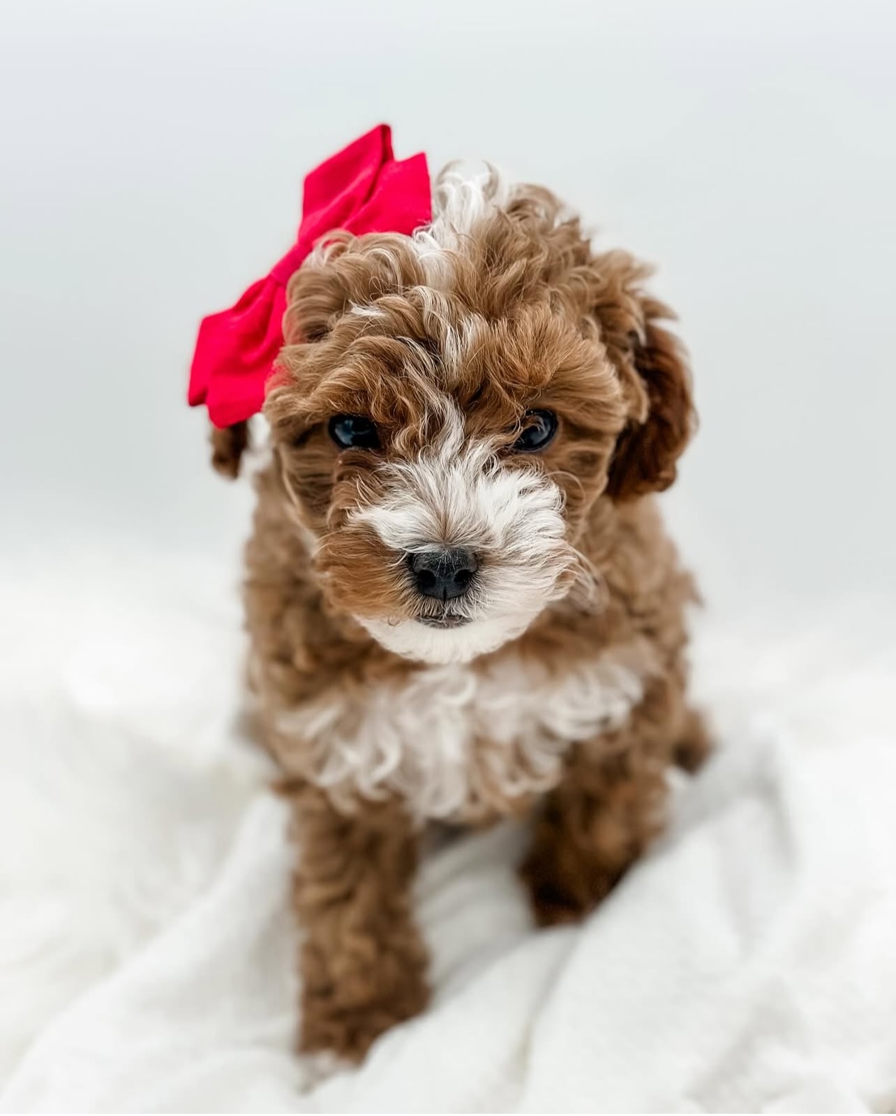 Roxy is a playful and curious Golden Doodle puppy with a heart full of energy and loyalty. With her big ears, bright eyes, and boundless enthusiasm, she’s always ready for an adventure or a cuddle. Smart and eager to please, Roxy is quickly learning the ropes and stealing hearts wherever she goes.
